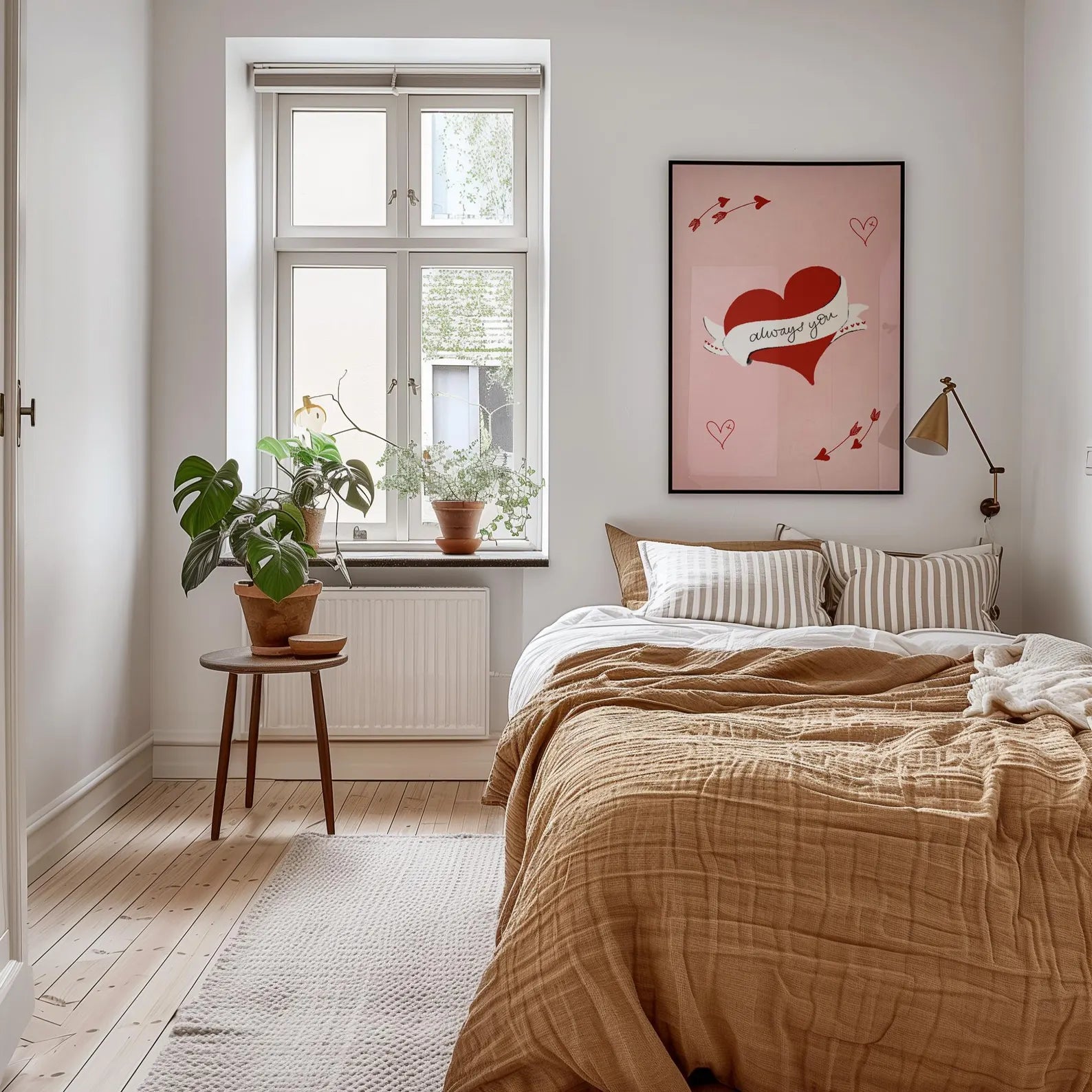 Always You, Valentines Love Heart Wall art print gift with heart and arrow illustrations on a pink background. Valentines gifts for her